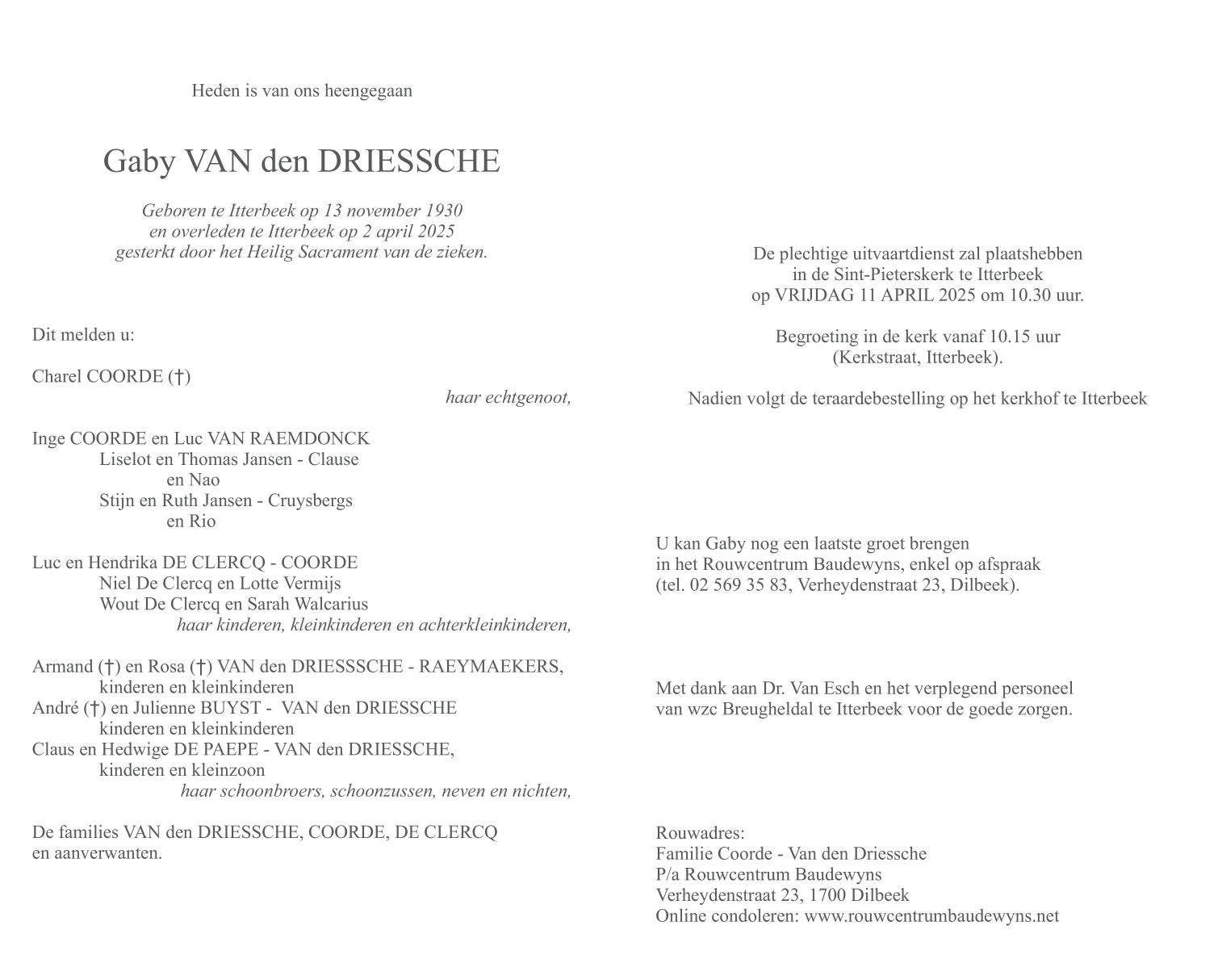 Mevrouw Gaby (Gabriëlle) Van den Driessche