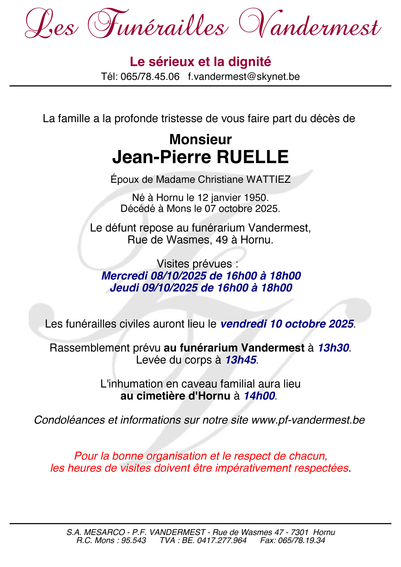 Fallecido en Mons (7000) el martes, 7 de octubre de 2025 a la edad de 75 años