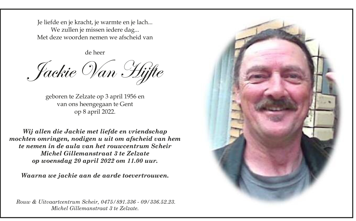 Died in Gent (9000) on 08 April 2022 at the age of 66 years