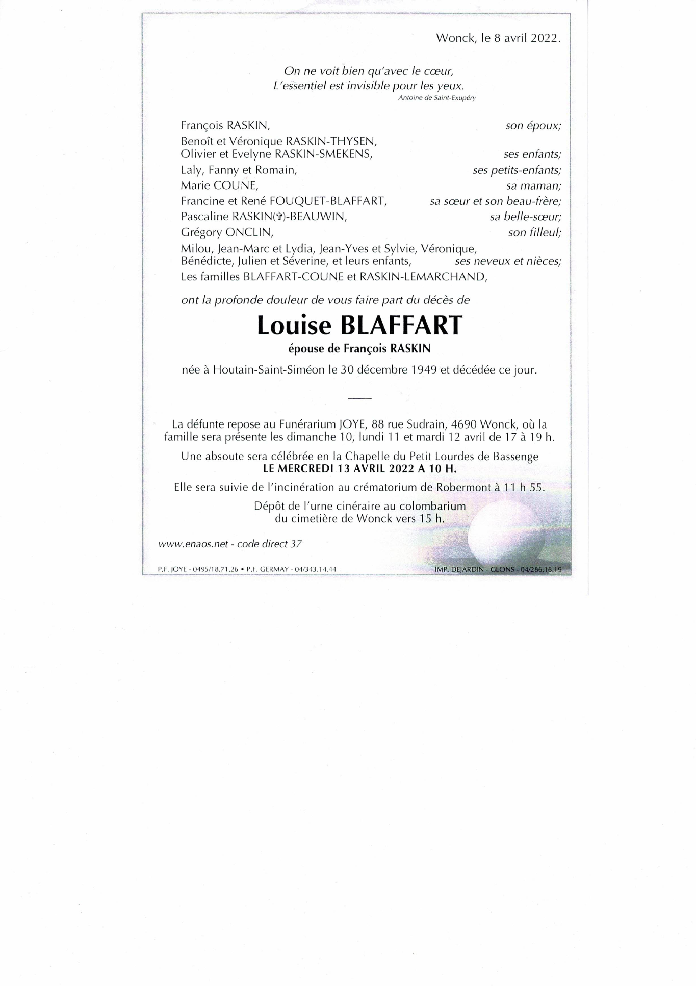 Overleden te Wonck (4690) op vrijdag 8 april 2022 op 72-jarige leeftijd