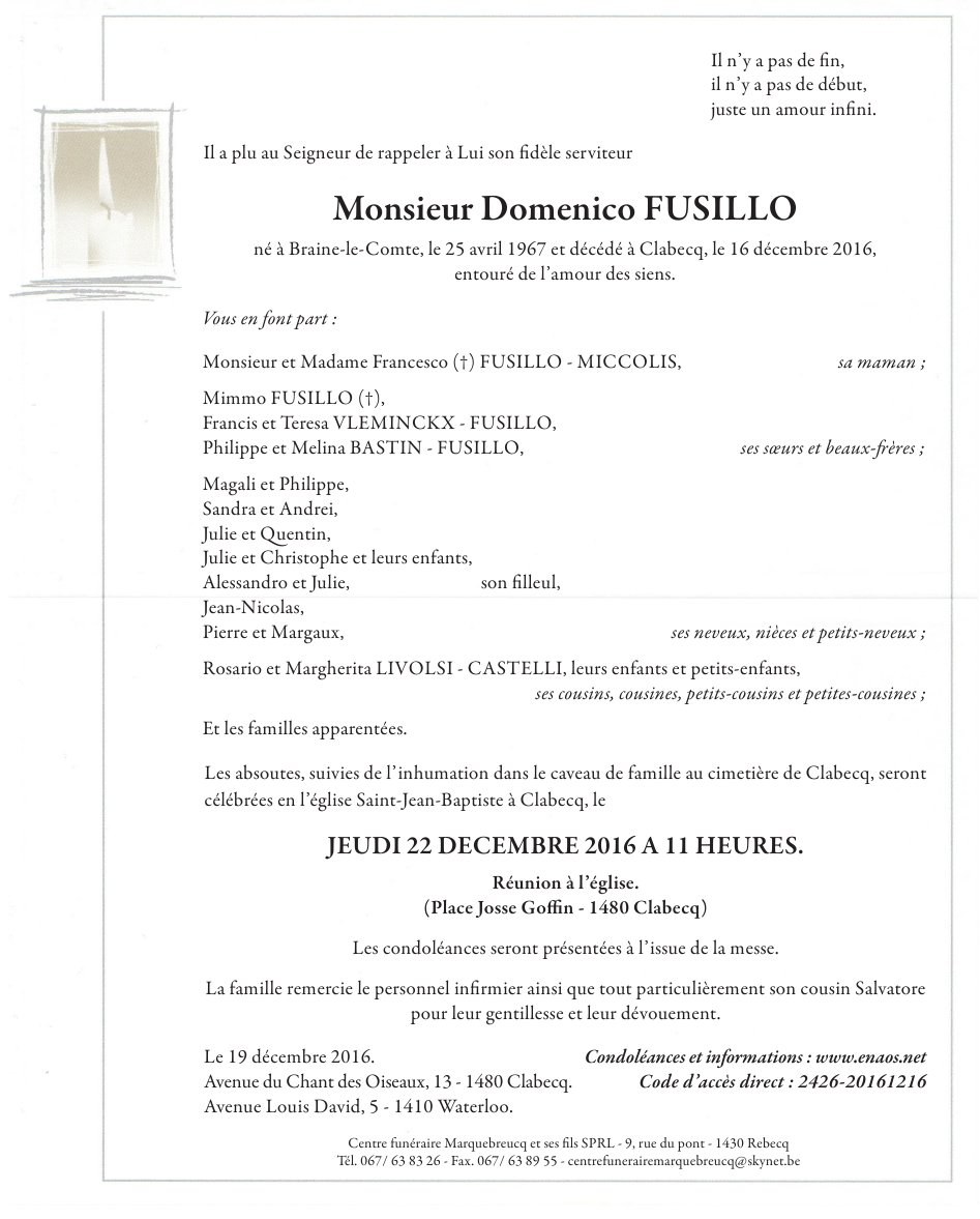 Overleden te Clabecq (1480) op vrijdag 16 december 2016 op 49-jarige leeftijd