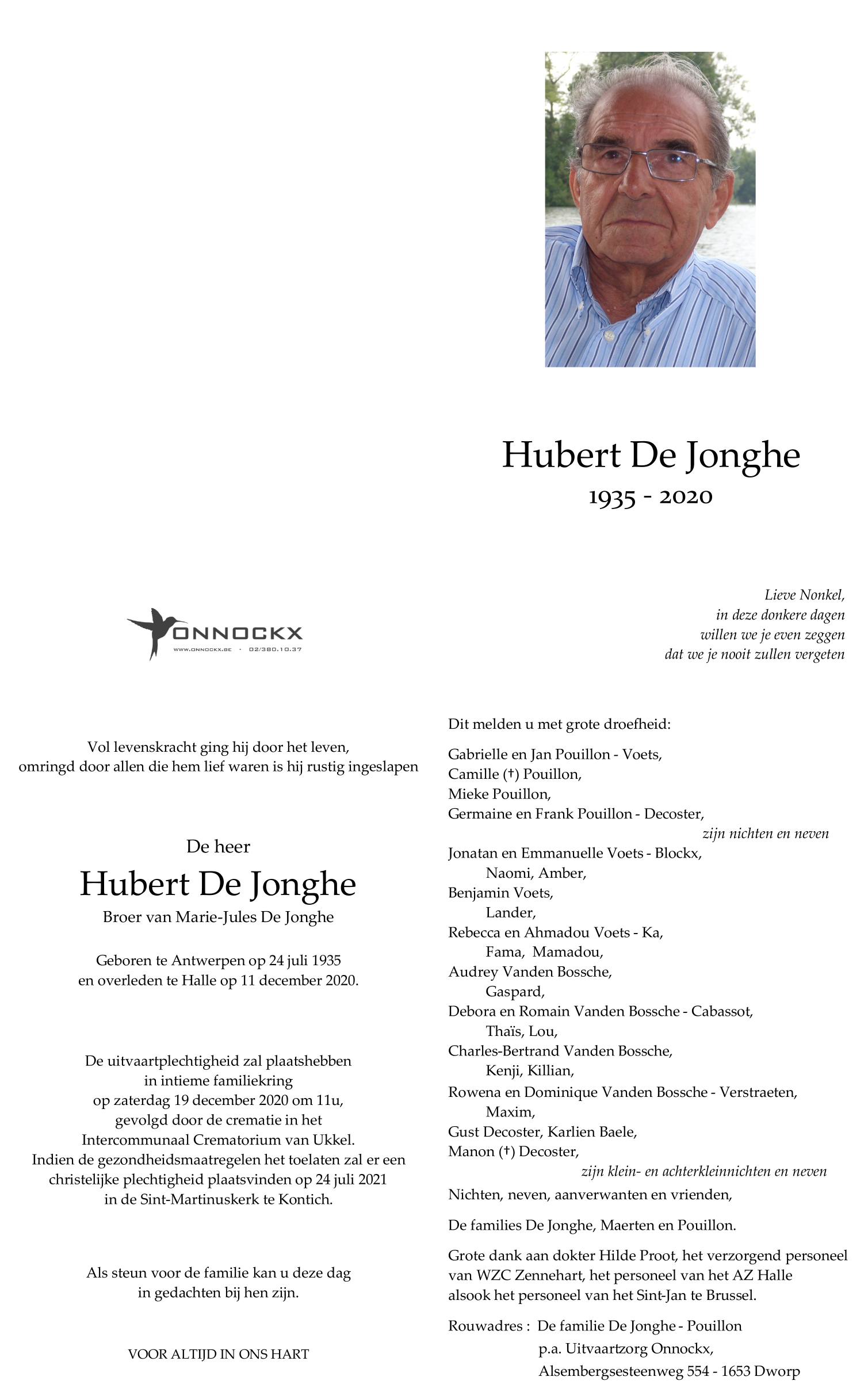 Décédé à Halle (1500) le vendredi 11 décembre 2020 à l'âge de 85 ans