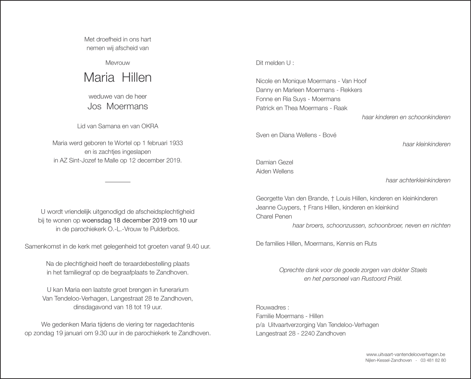 Died in Malle (2390) on 12 December 2019 at the age of 86 years
