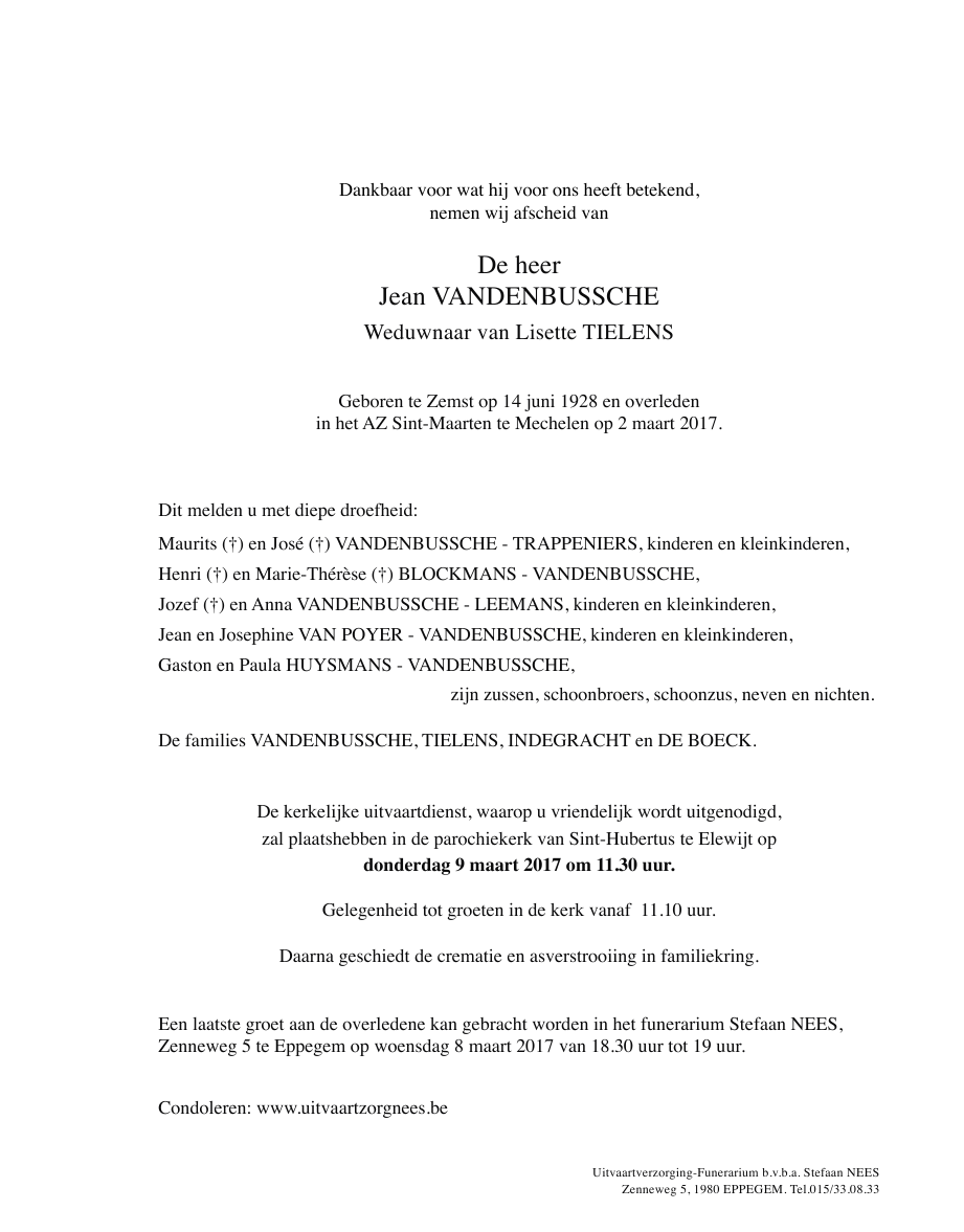 Died in Mechelen (2800) on 02 March 2017 at the age of 88 years