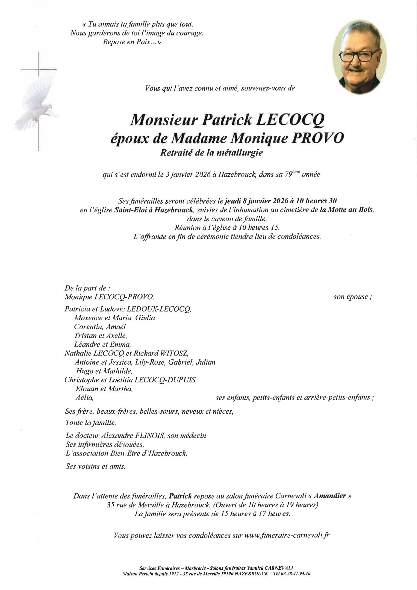 Décédé à Hazebrouck (59190, France) le samedi 3 janvier 2026 à l'âge de 78 ans