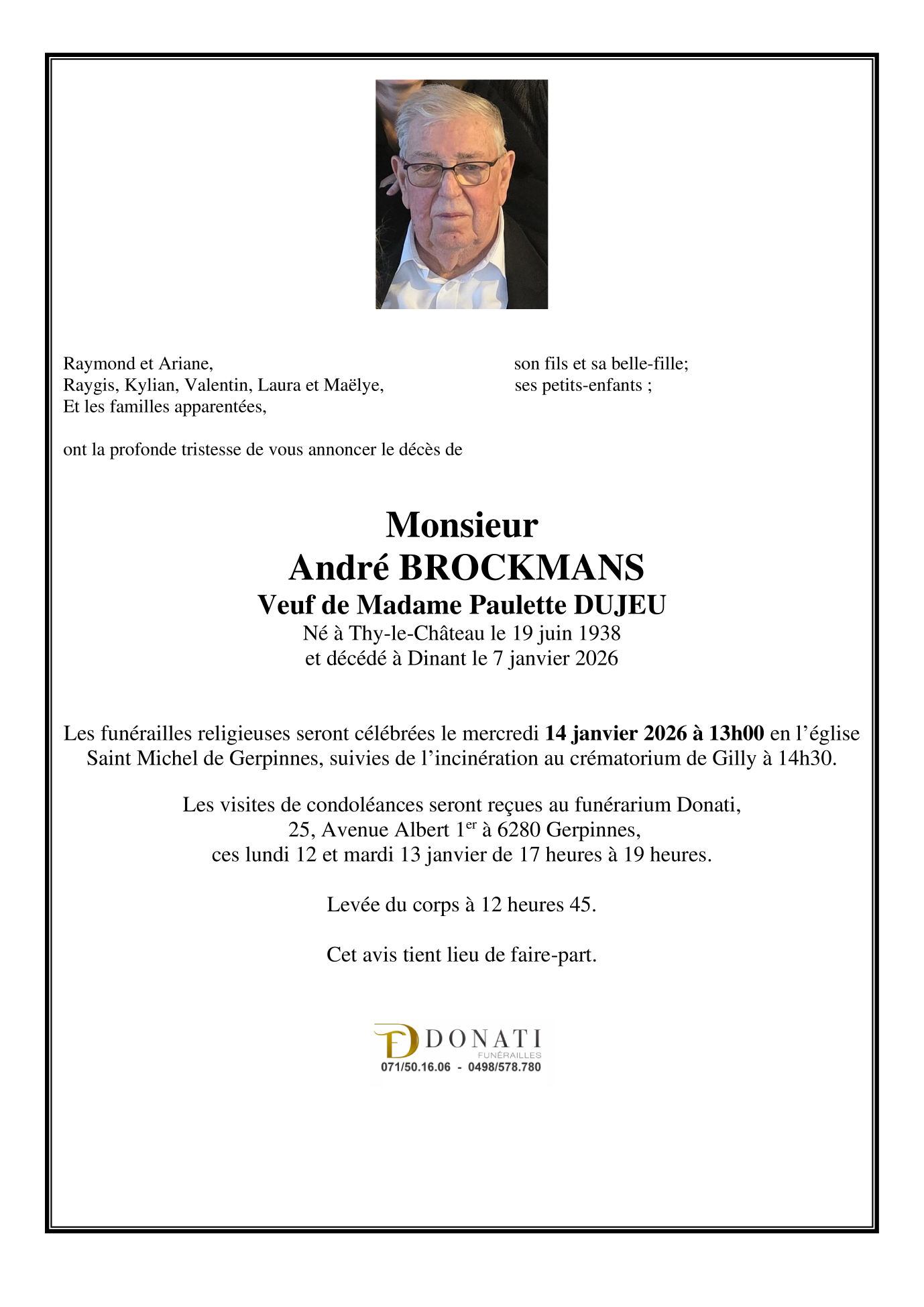 Décédé à Dinant (5500) le mercredi 7 janvier 2026 à l'âge de 87 ans