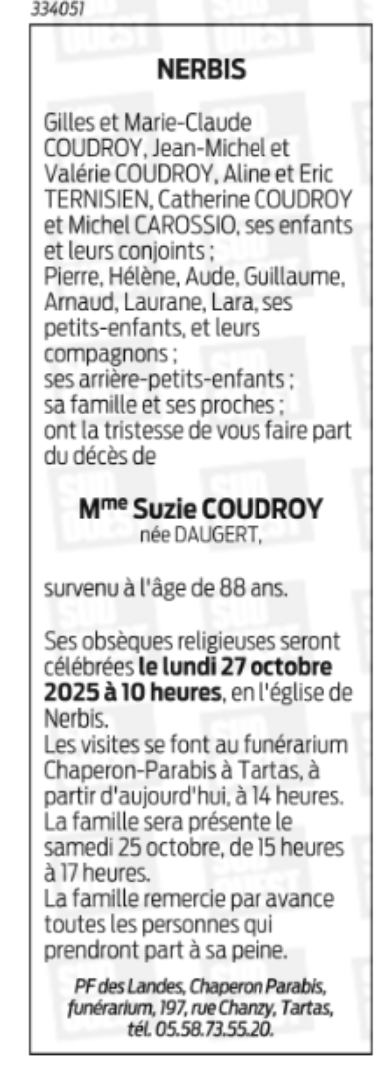 Veuve de Monsieur COUDROY