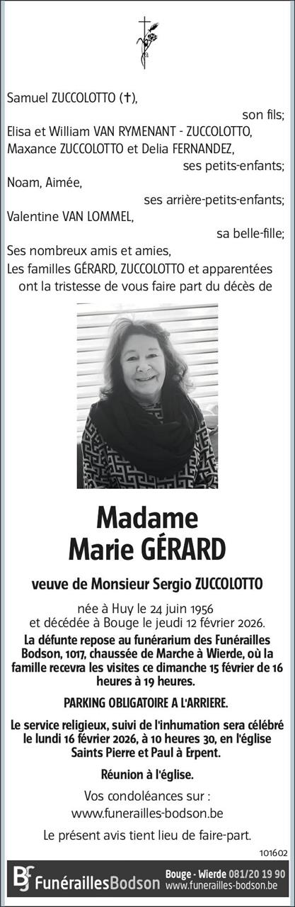 Décédée à Bouge (5004) le jeudi 12 février 2026 à l'âge de 69 ans
