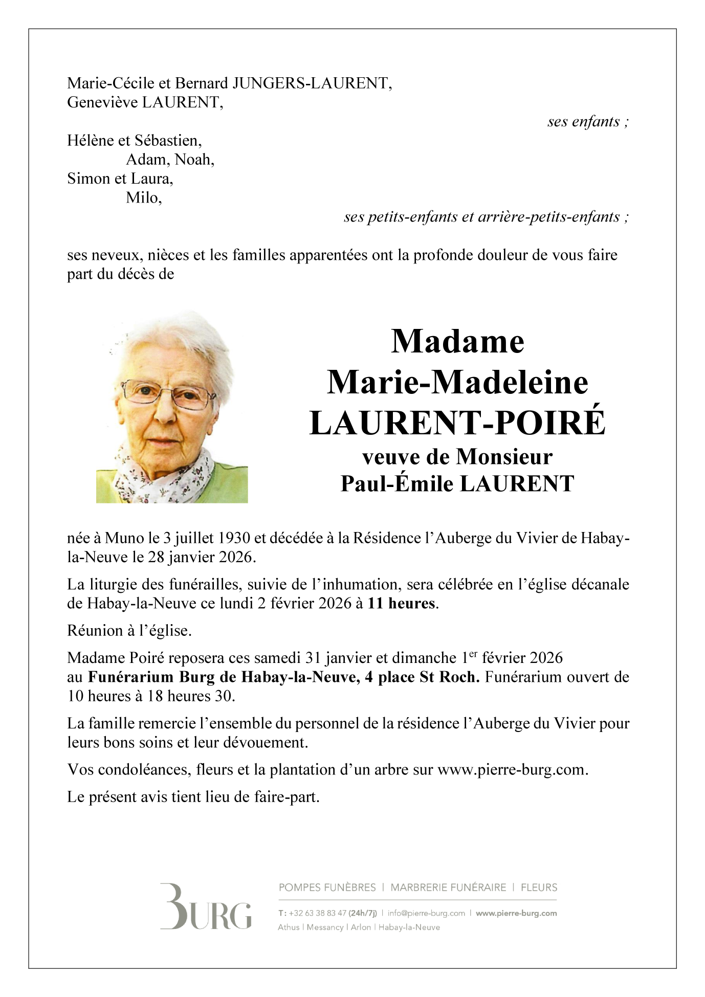 Died in Habay (6720) on 28 January 2026 at the age of 95 years