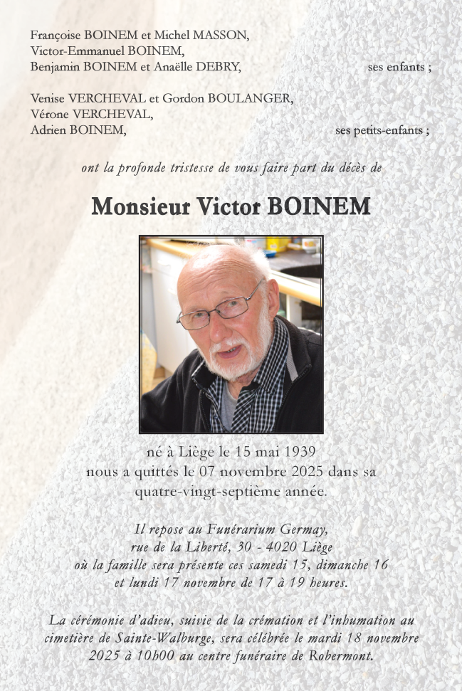 Overleden te Liège (4000) op vrijdag 7 november 2025 op 86-jarige leeftijd