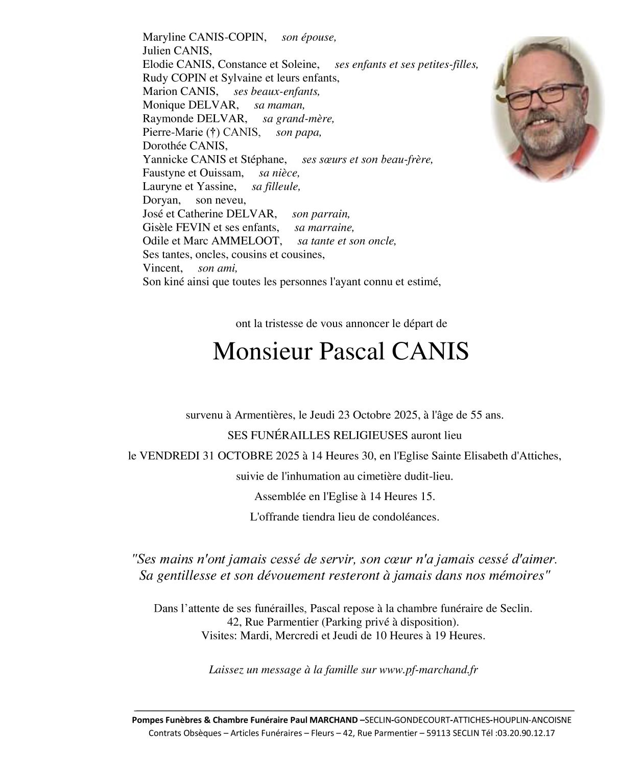 Décédé à Armentières (59280, France) le jeudi 23 octobre 2025 à l'âge de 55 ans