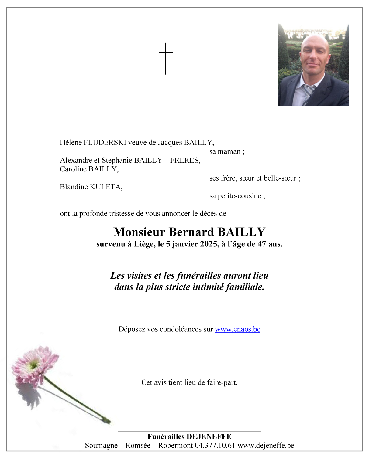 Décédé à Liège (4000) le dimanche 5 janvier 2025 à l'âge de 47 ans