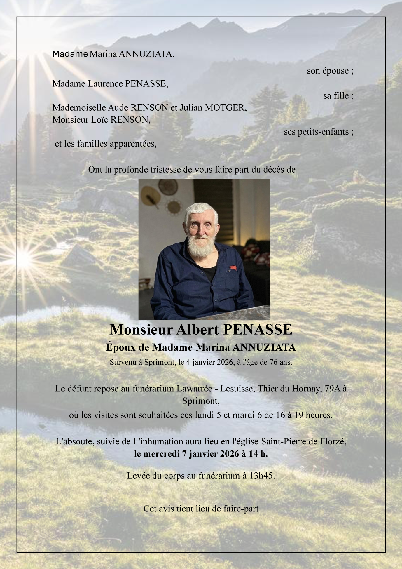 Décédé à Sprimont (4140) le dimanche 4 janvier 2026 à l'âge de 76 ans