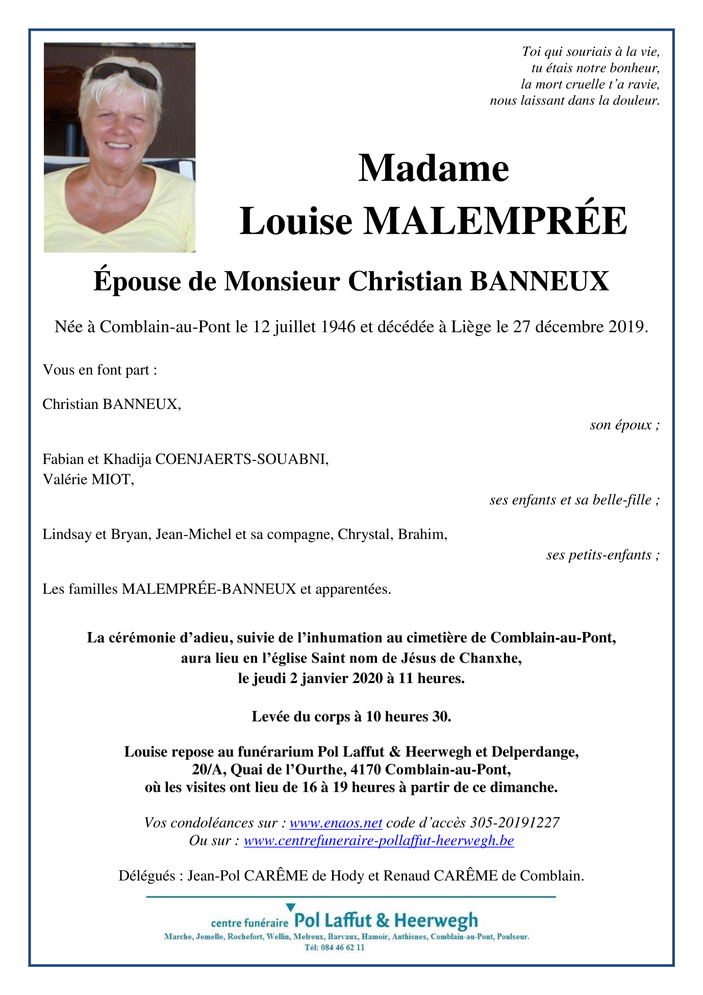 Madame Louise MALEMPRÉE