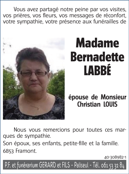 Décédée à Libramont (6800) le mardi 8 janvier 2019 à l'âge de 65 ans