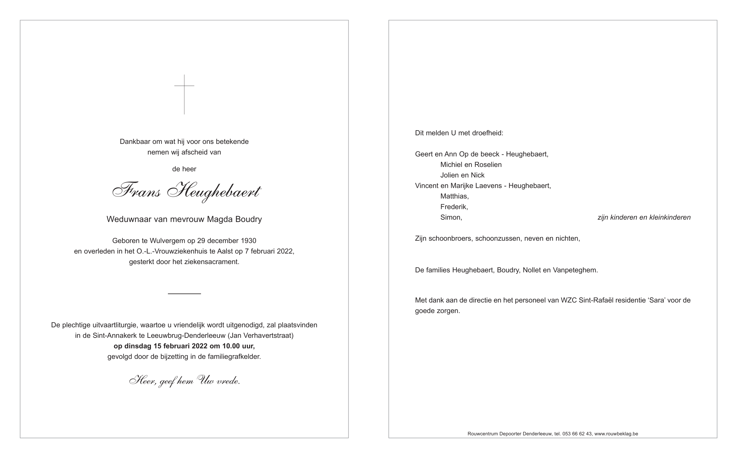 Overleden te Aalst (9300) op maandag 7 februari 2022 op 91-jarige leeftijd