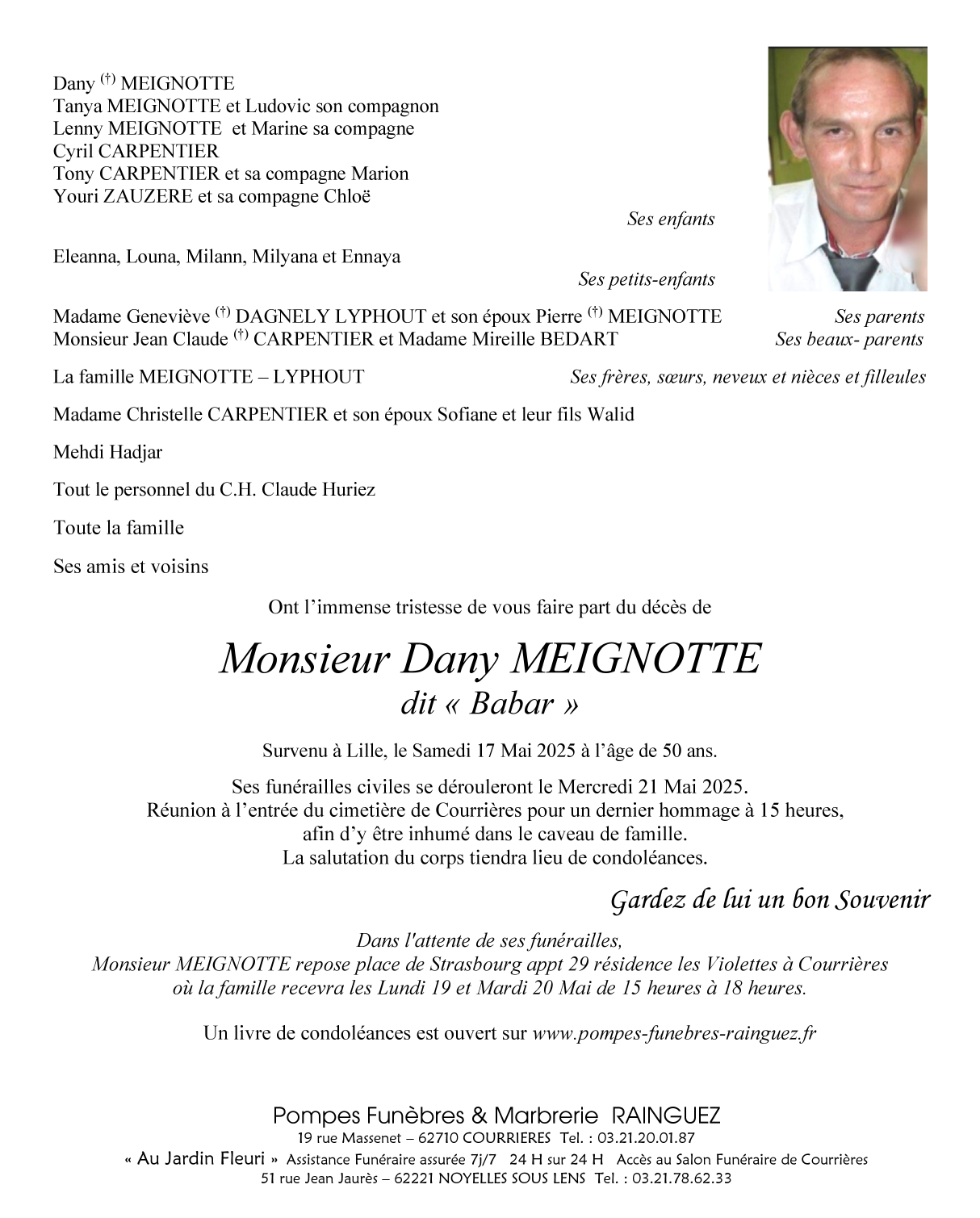 Fallecido en Lille (59000, Francia) el sábado, 17 de mayo de 2025 a la edad de 50 años