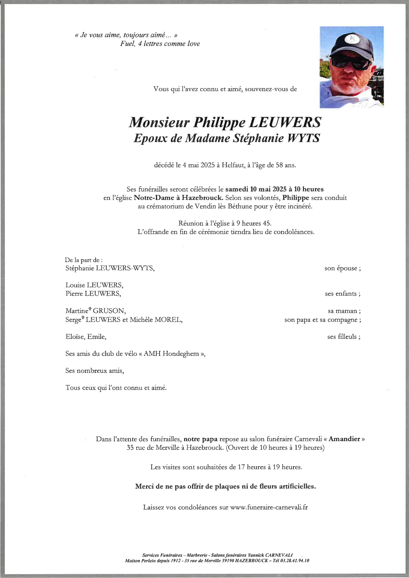 Overleden te Saint-Omer (62500, Frankrijk) op zondag 4 mei 2025 op 58-jarige leeftijd