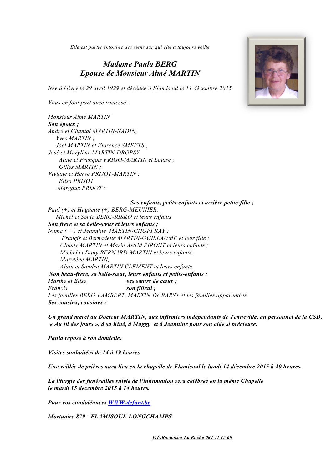 Fallecida en Flamisoul (6688) el viernes, 11 de diciembre de 2015 a la edad de 86 años