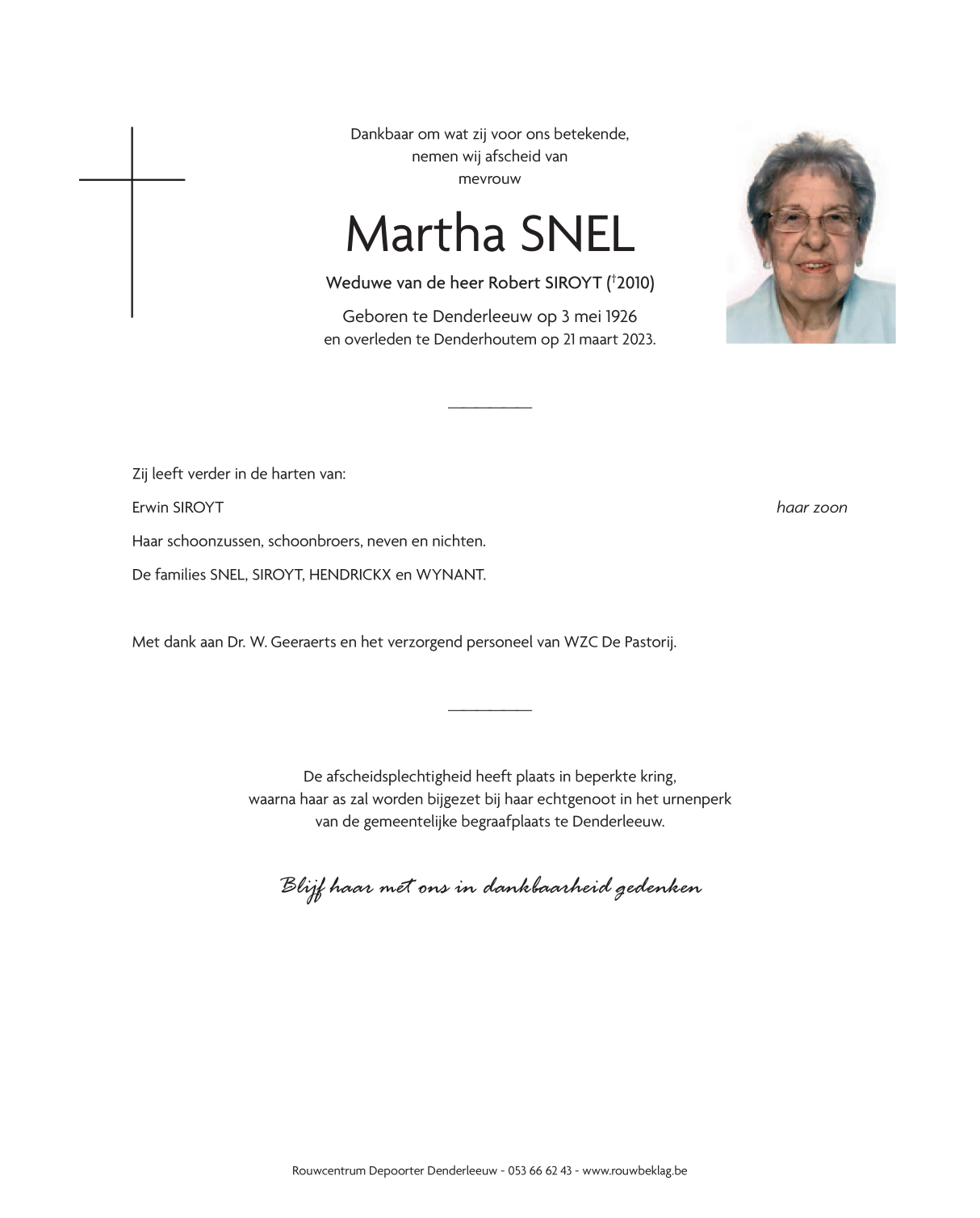 Died in Denderhoutem (9450) on 21 March 2023 at the age of 96 years
