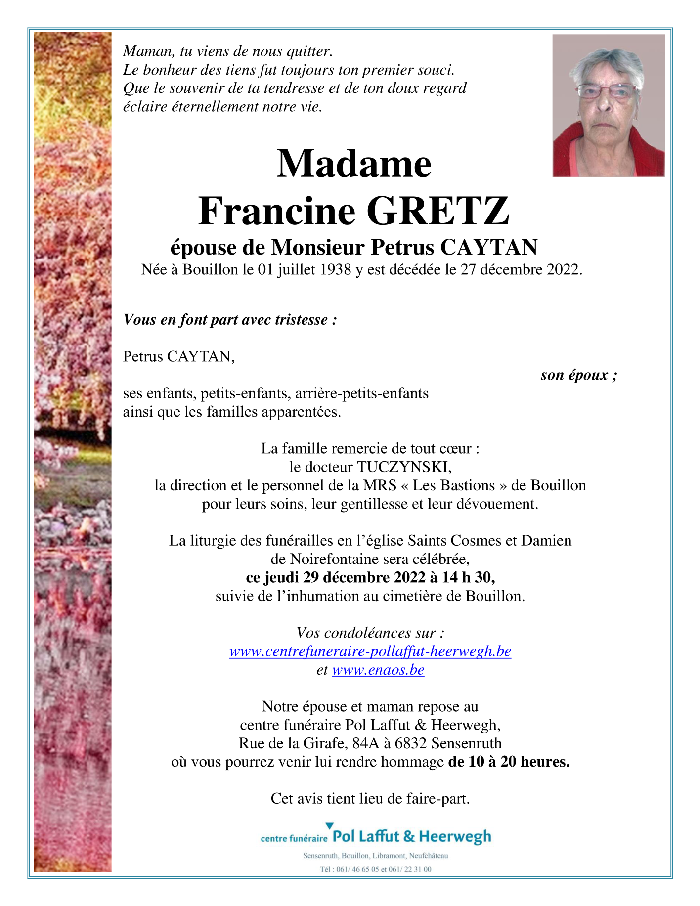 Overleden te Bouillon (6830) op dinsdag 27 december 2022 op 84-jarige leeftijd