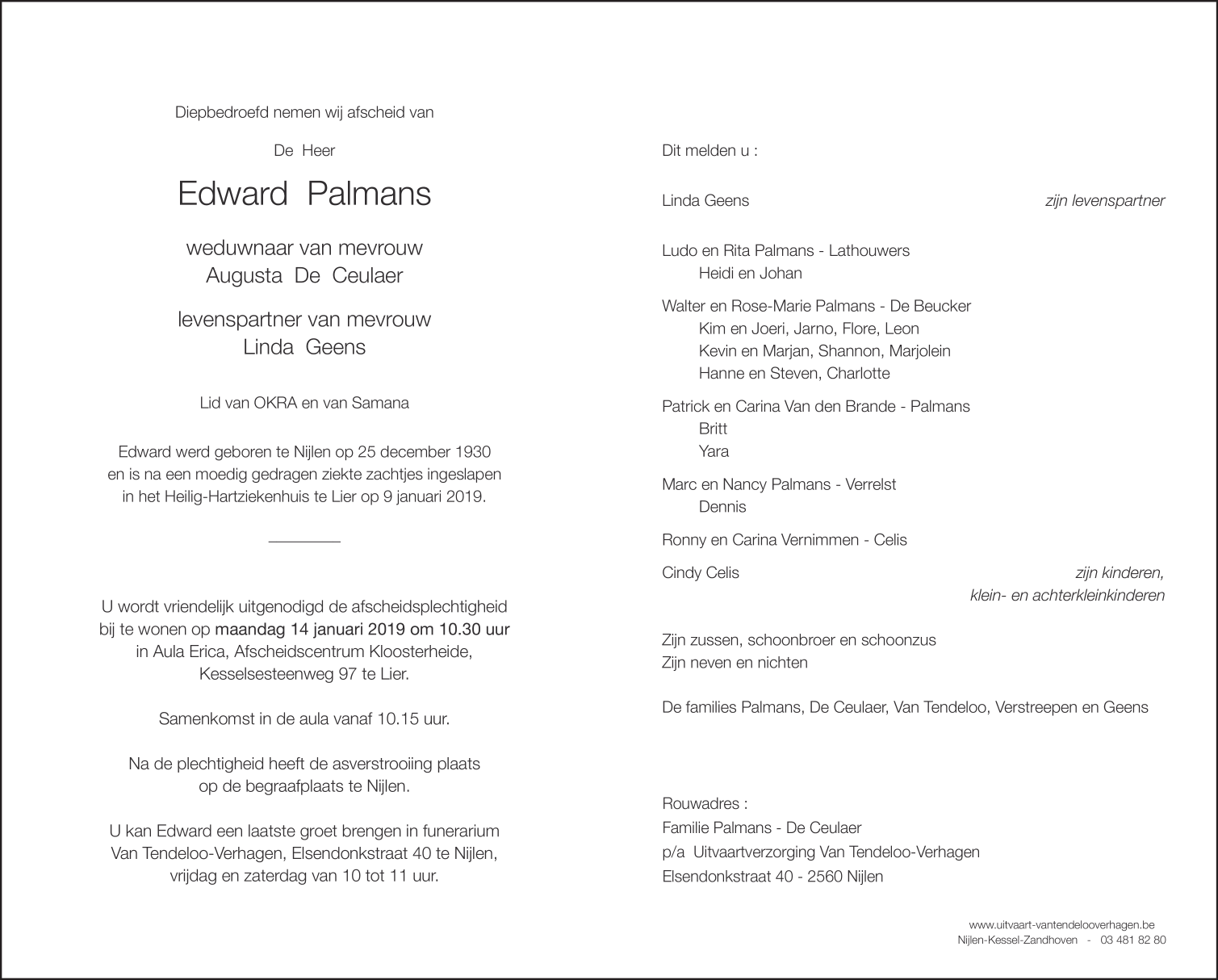 Décédé à Lier (2500) le mercredi 9 janvier 2019 à l'âge de 88 ans