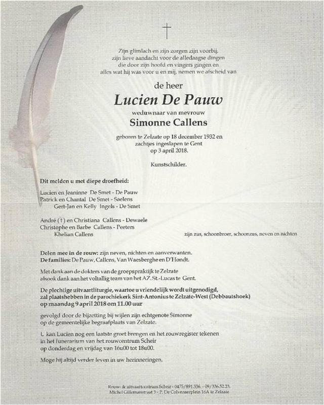Décédé à Gent (9000) le mardi 3 avril 2018 à l'âge de 85 ans