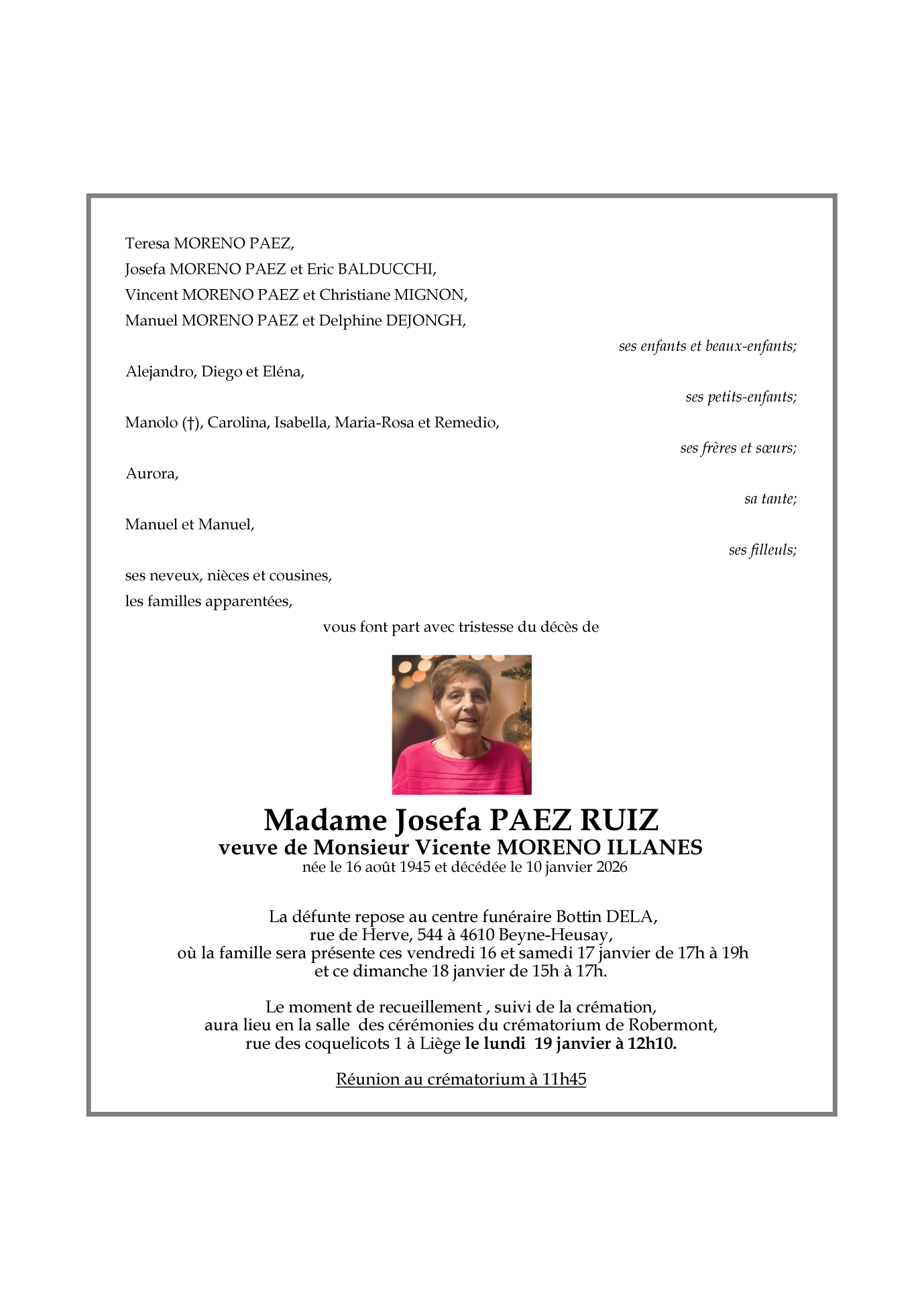 Fallecida en Chaudfontaine (4050) el sábado, 10 de enero de 2026 a la edad de 80 años