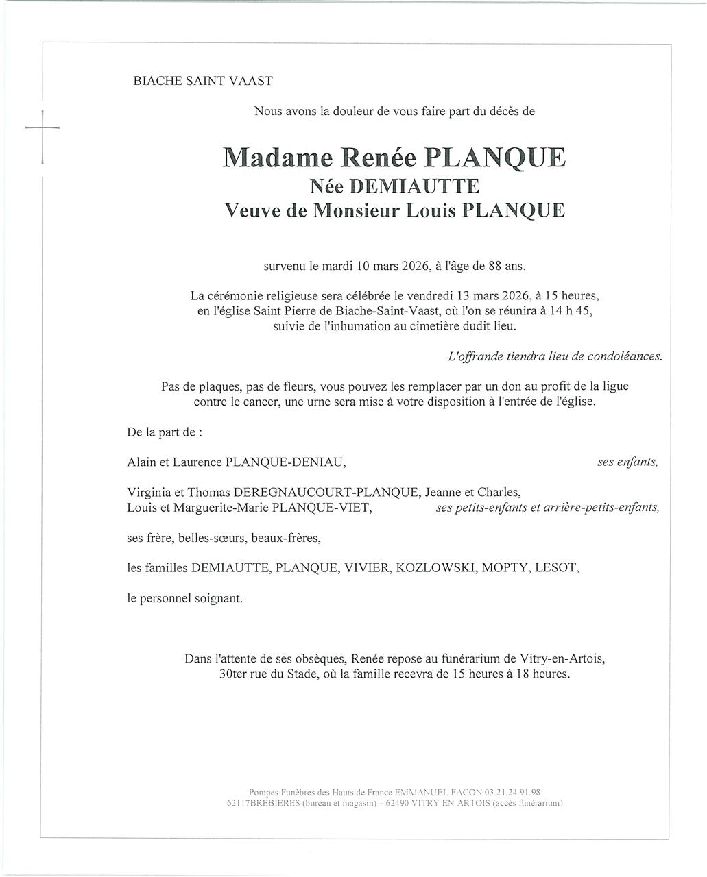 Madame Renée, Jeanne PLANQUE née DEMIAUTTE