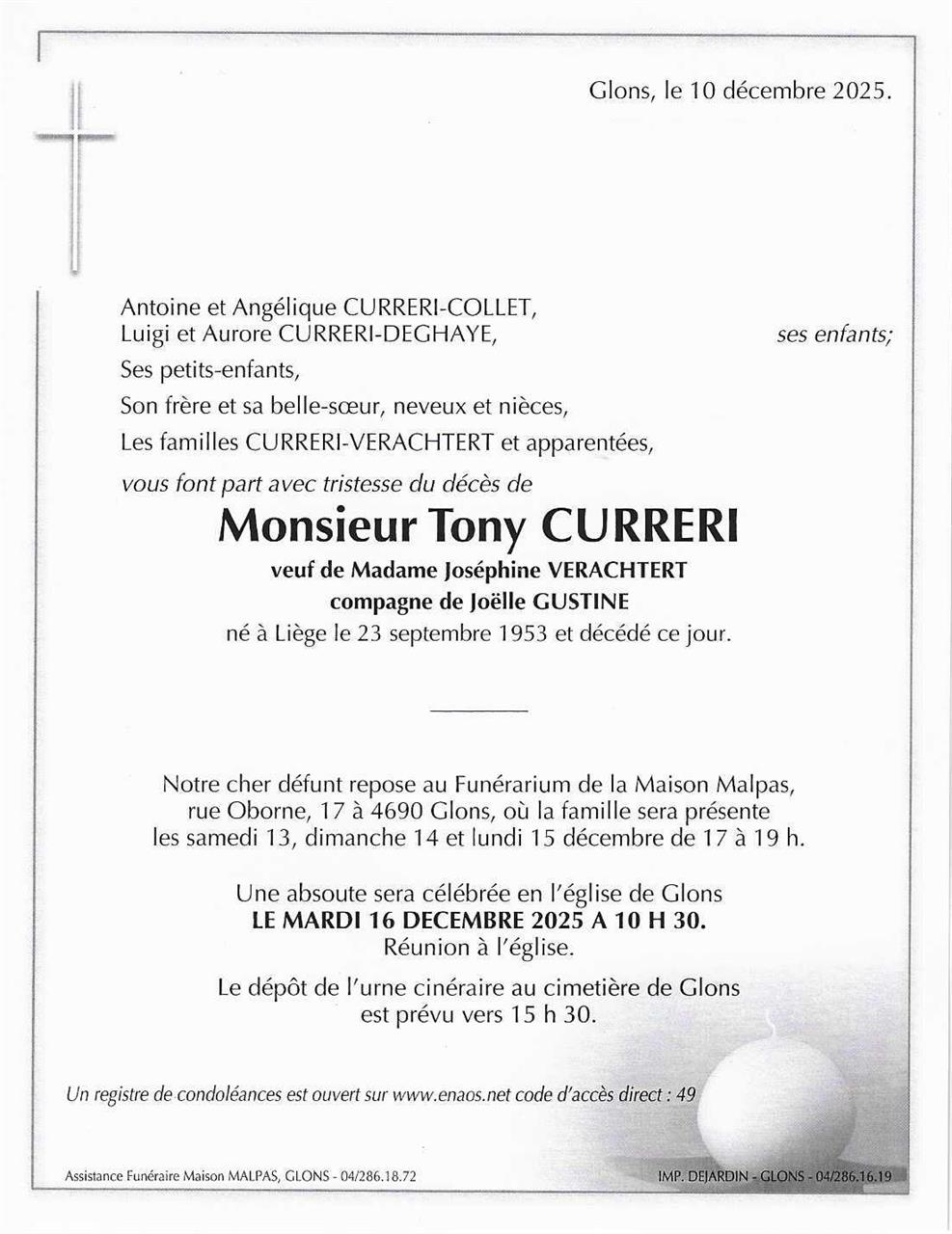 Décédé à Liège (4000) le mercredi 10 décembre 2025 à l'âge de 72 ans
