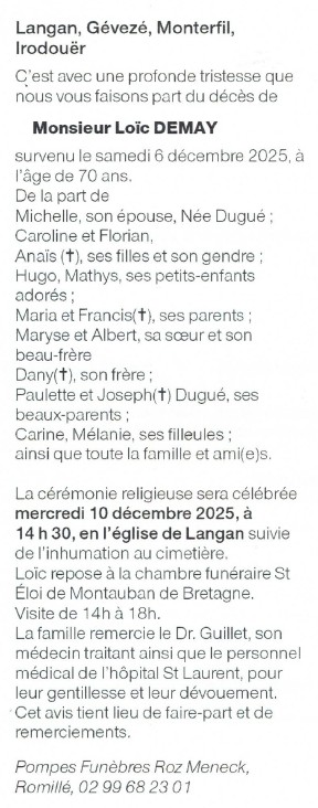 Décédé à Rennes (35700, France) le samedi 6 décembre 2025 à l'âge de 70 ans