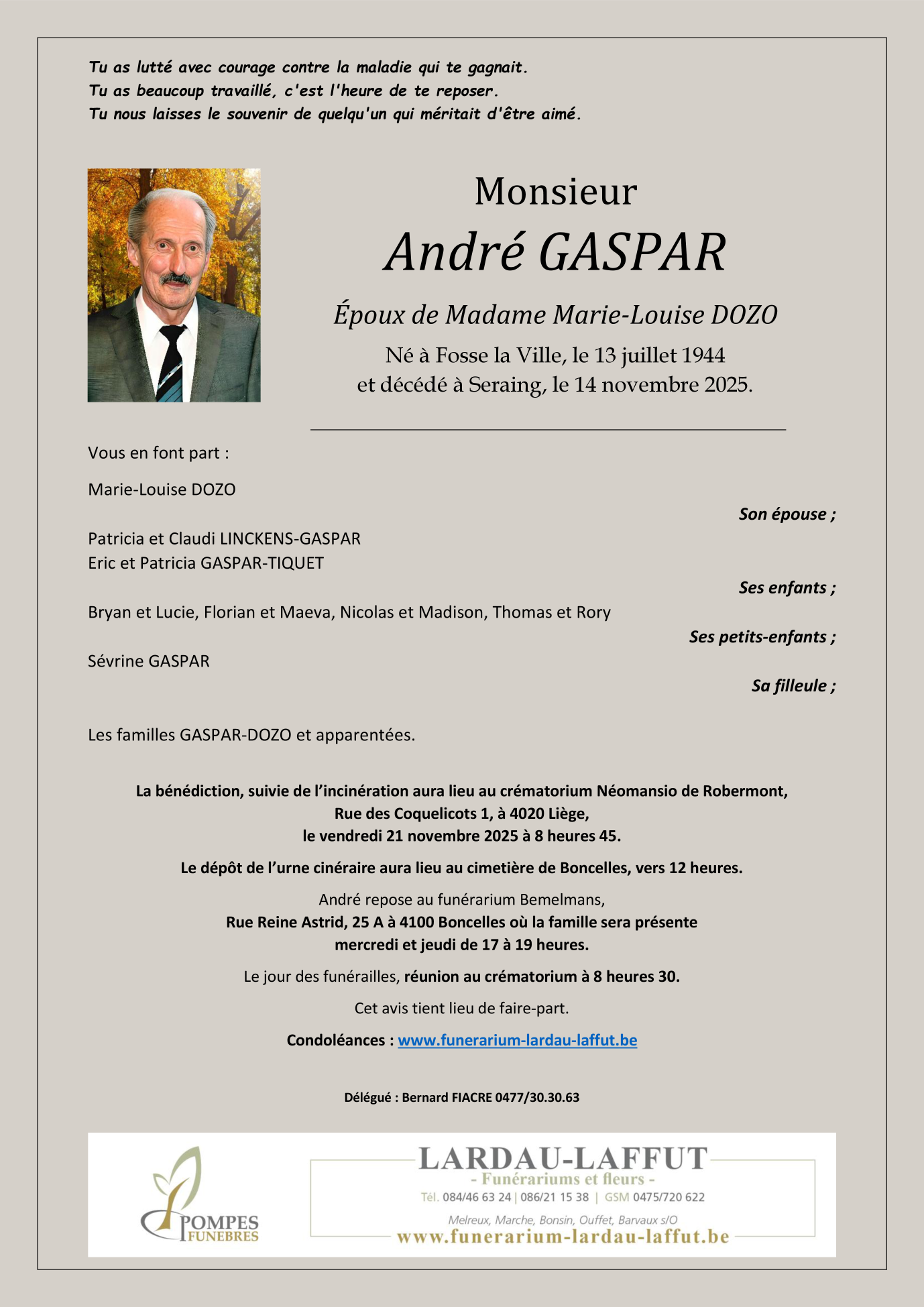 Geboren te Fosses-la-Ville (5070) op donderdag 13 juli 1944