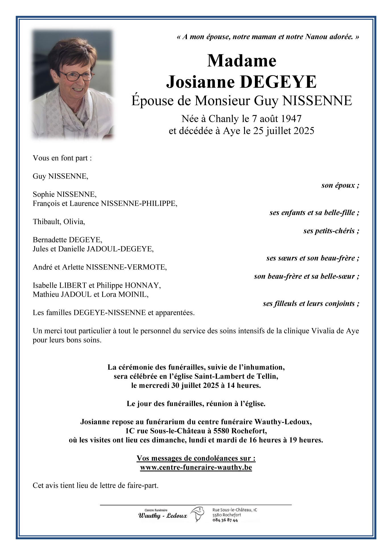 Madame Josianne DEGEYE