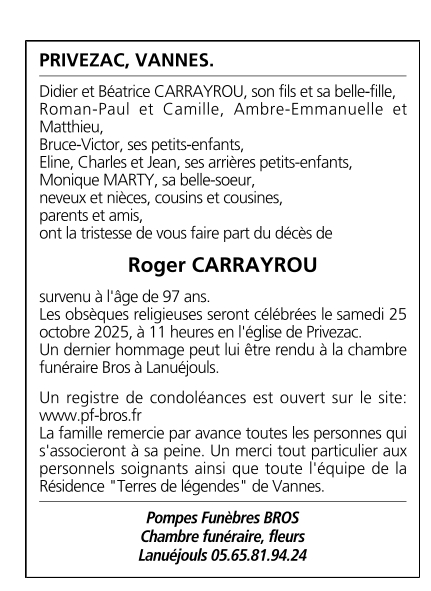 Décédé à Vannes (56000, France) le mercredi 22 octobre 2025 à l'âge de 97 ans