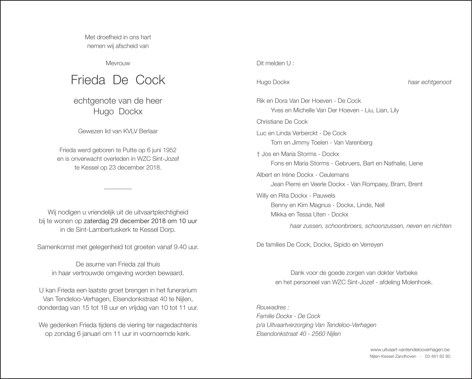 Overleden te Kessel (2560) op zondag 23 december 2018 op 66-jarige leeftijd