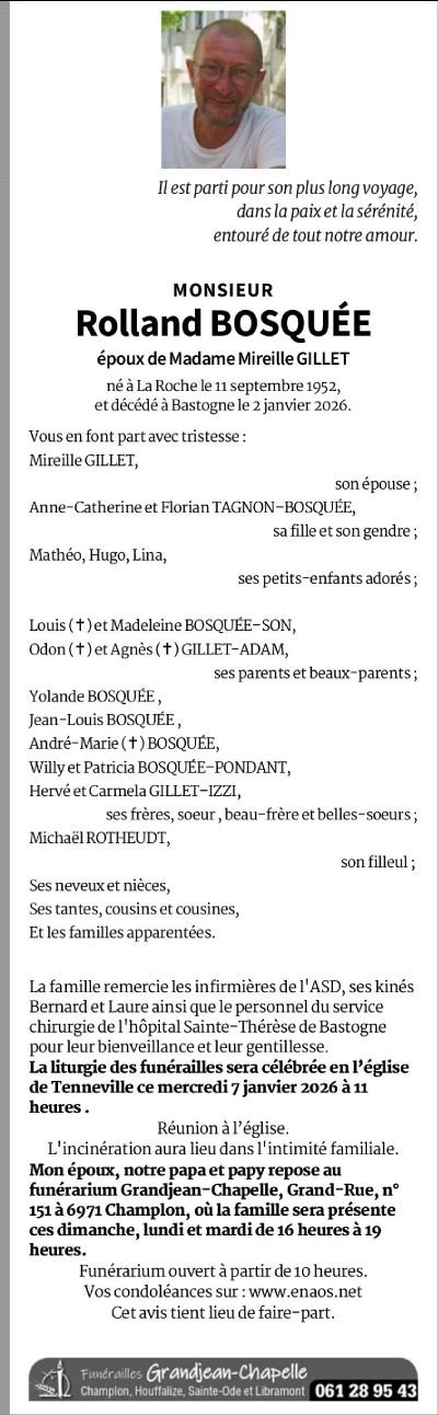 Overleden te Bastogne (6600) op vrijdag 2 januari 2026 op 73-jarige leeftijd