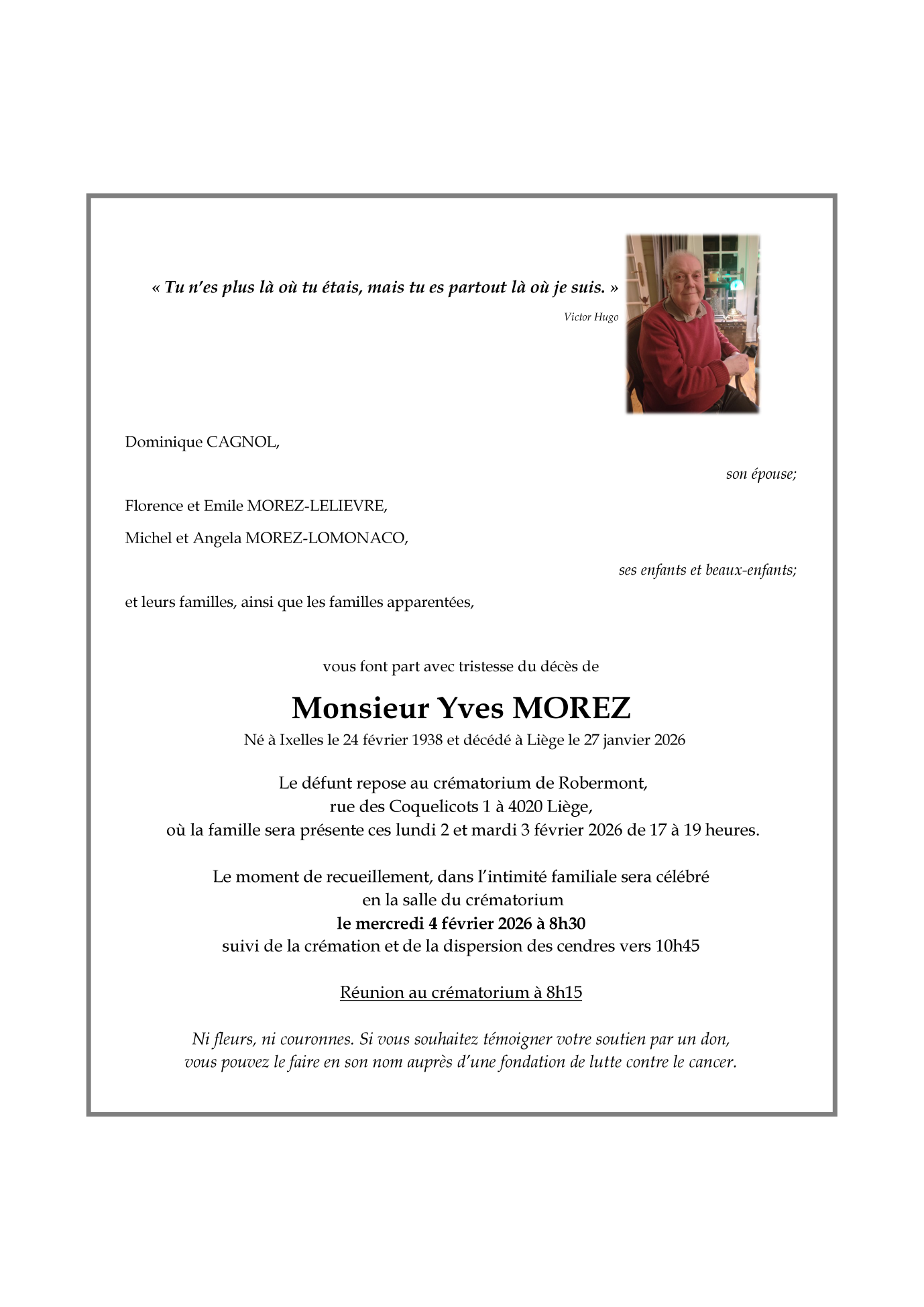 Décédé à Rocourt (4000) le mardi 27 janvier 2026 à l'âge de 87 ans