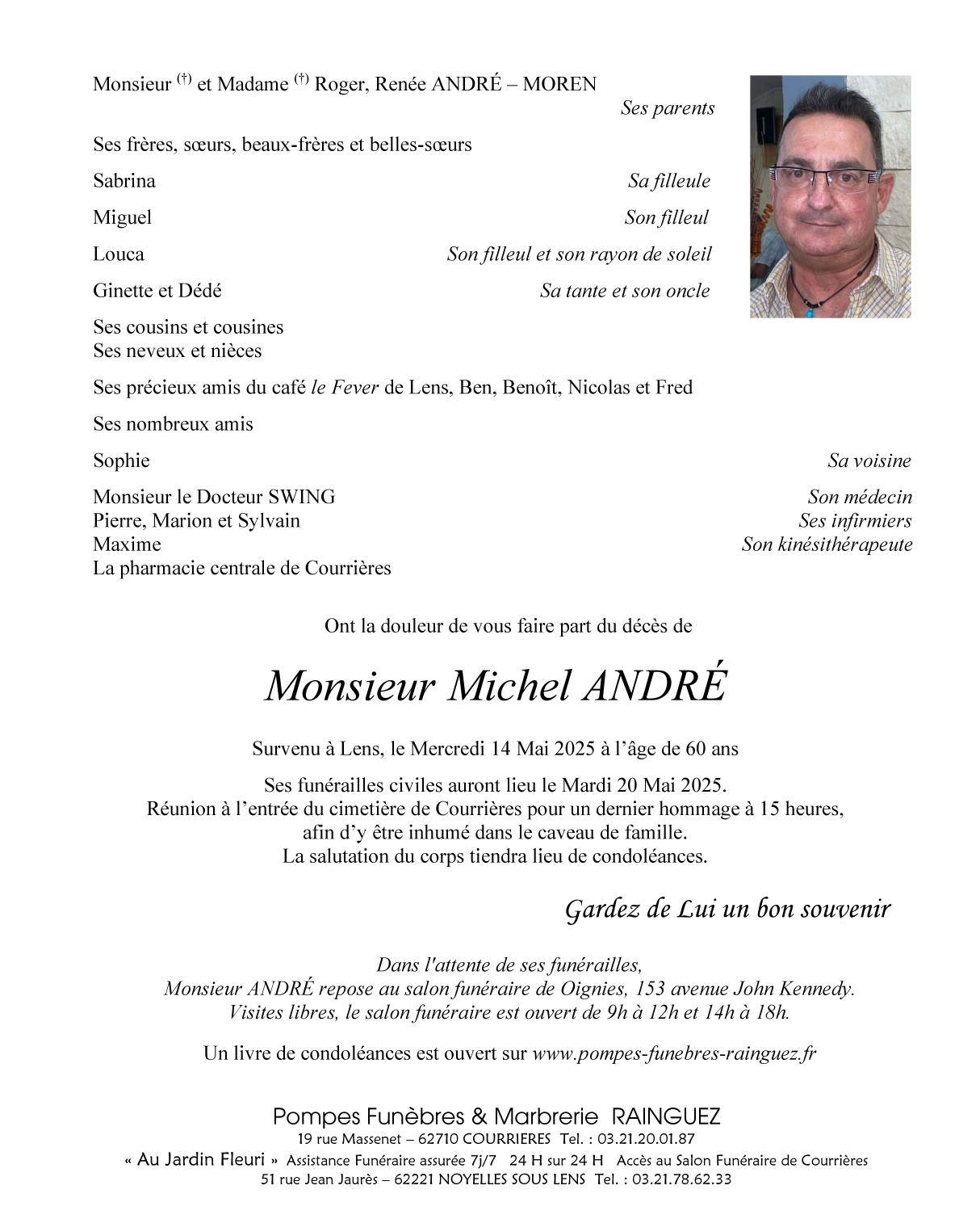 Décédé à Lens (62300, France) le mercredi 14 mai 2025 à l'âge de 60 ans
