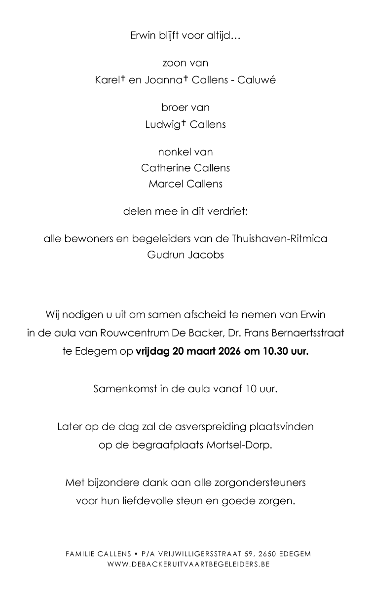 Décédé à Mortsel (2640) le mercredi 11 mars 2026 à l'âge de 61 ans