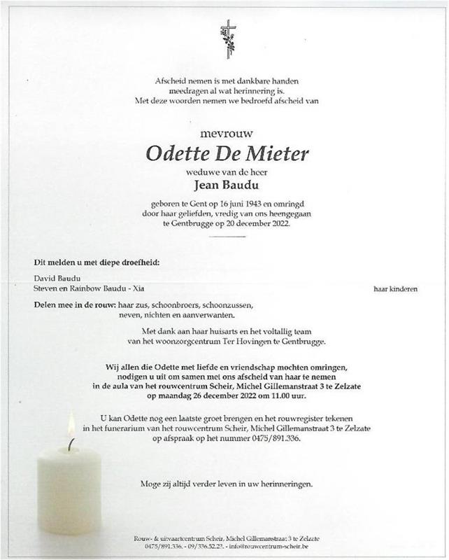Décédée à Gentbrugge (9050) le mardi 20 décembre 2022 à l'âge de 79 ans