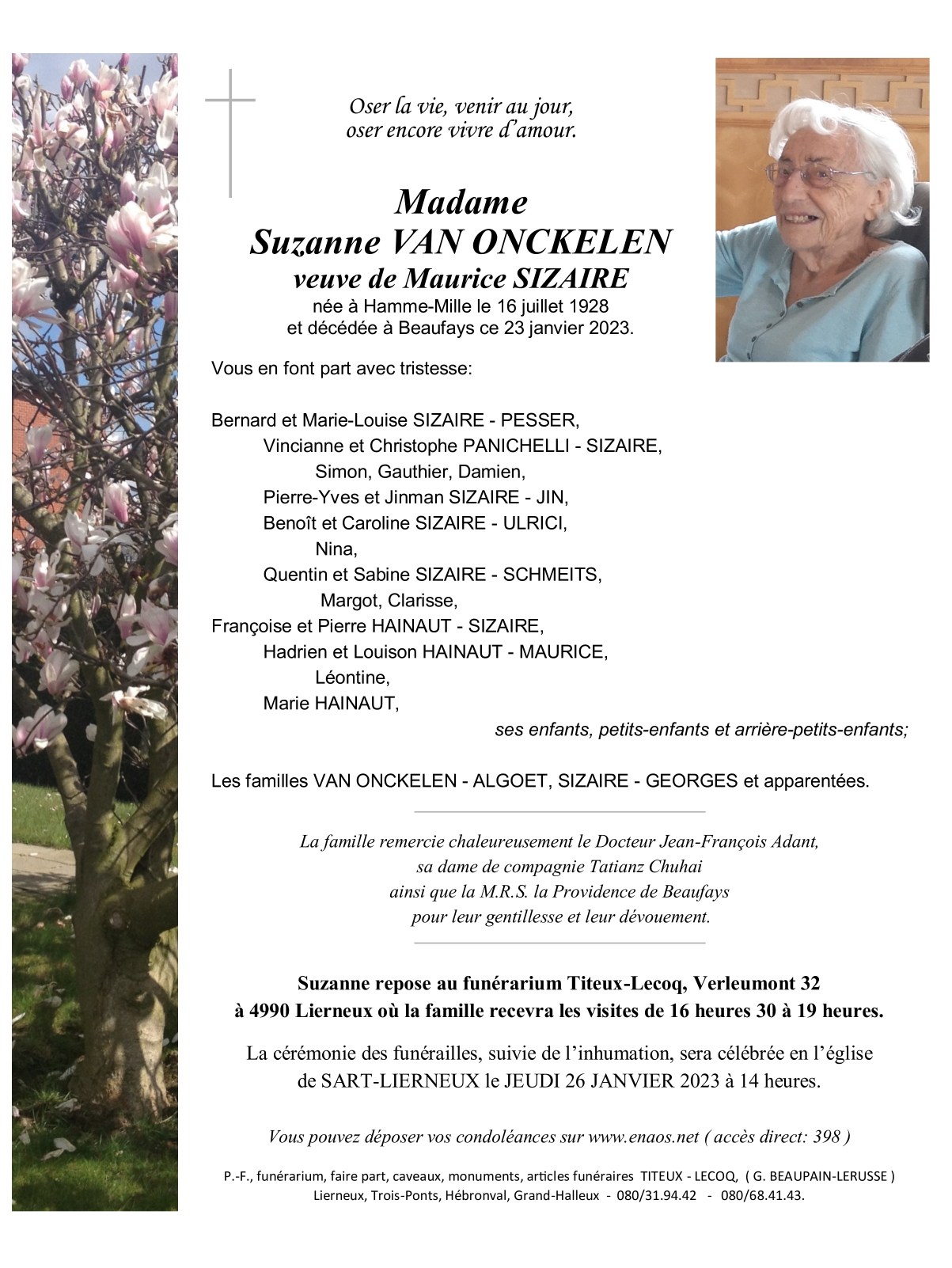 Veuve de Monsieur Maurice SIZAIRE