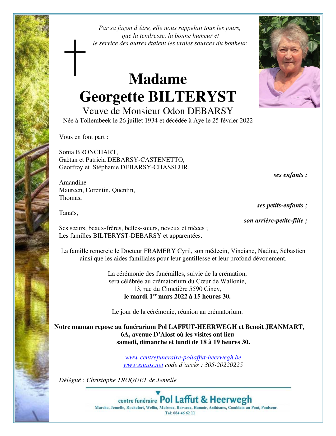 Décédée à Aye (6900) le vendredi 25 février 2022 à l'âge de 87 ans