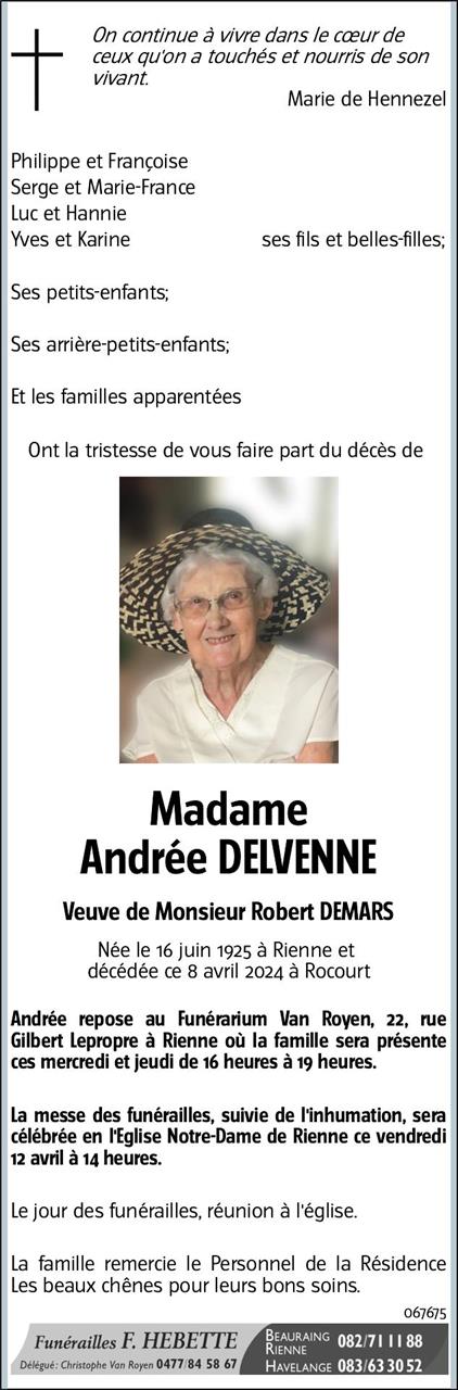Décédée à Rocourt (4000) le lundi 8 avril 2024 à l'âge de 98 ans