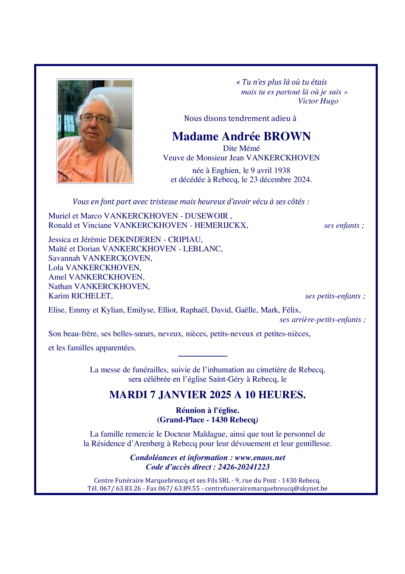 Overleden te Rebecq (1430) op maandag 23 december 2024 op 86-jarige leeftijd