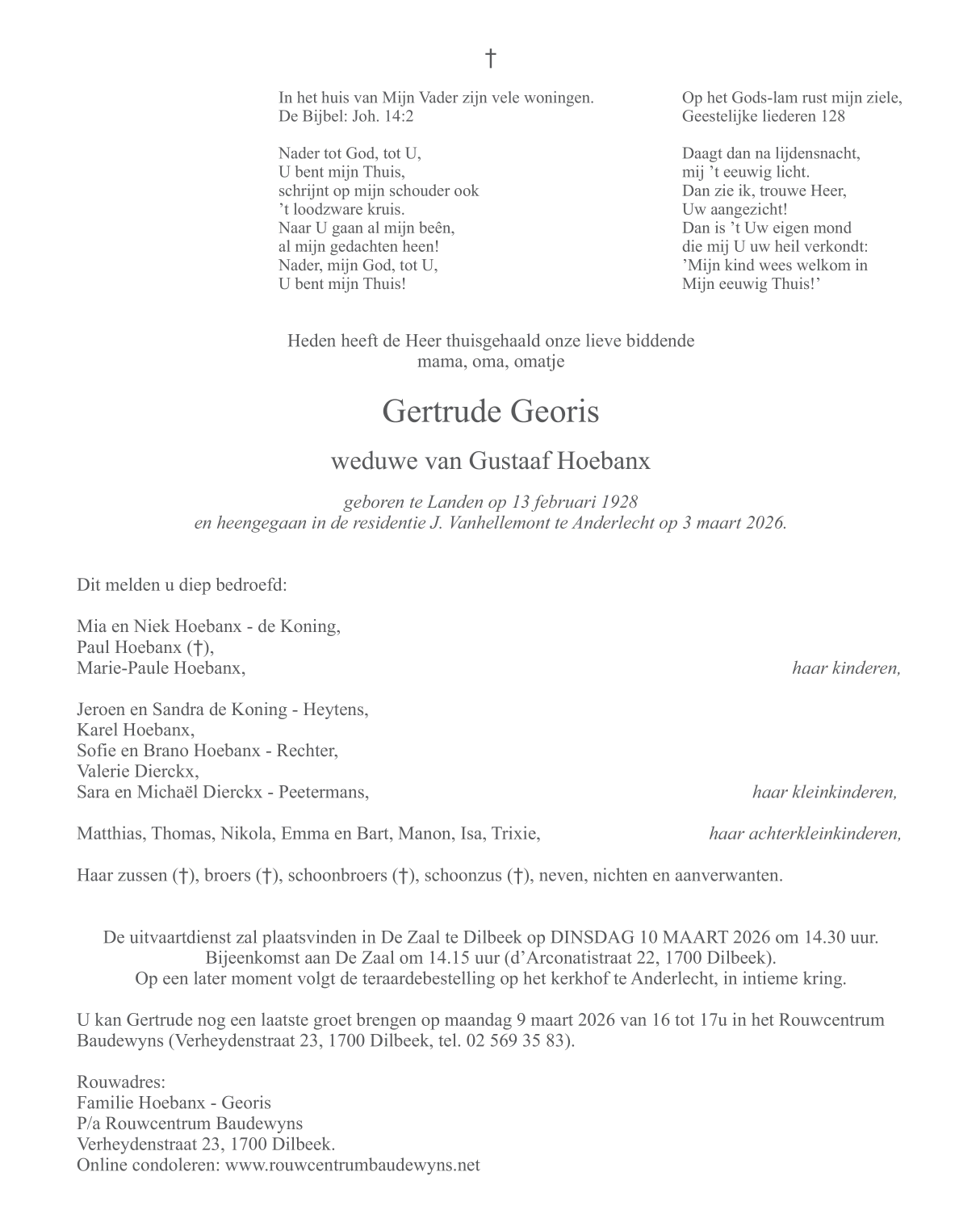 Décédée à Anderlecht (1070) le mardi 3 mars 2026 à l'âge de 98 ans