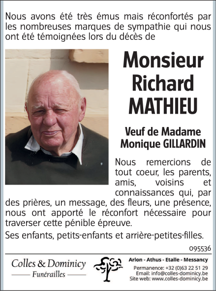 Décédé à Buzenol (6743) le mercredi 15 octobre 2025 à l'âge de 89 ans