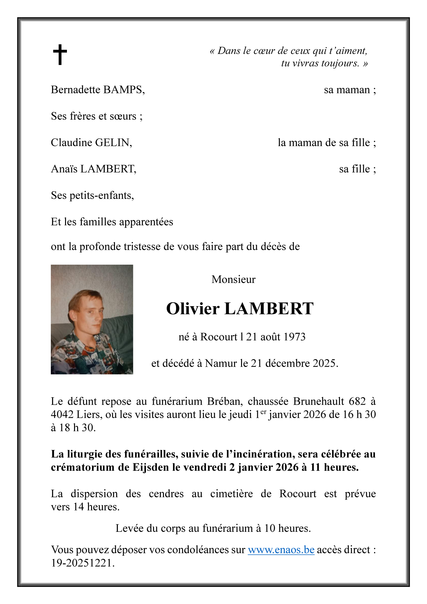 Overleden te Namur (5000) op zondag 21 december 2025 op 52-jarige leeftijd