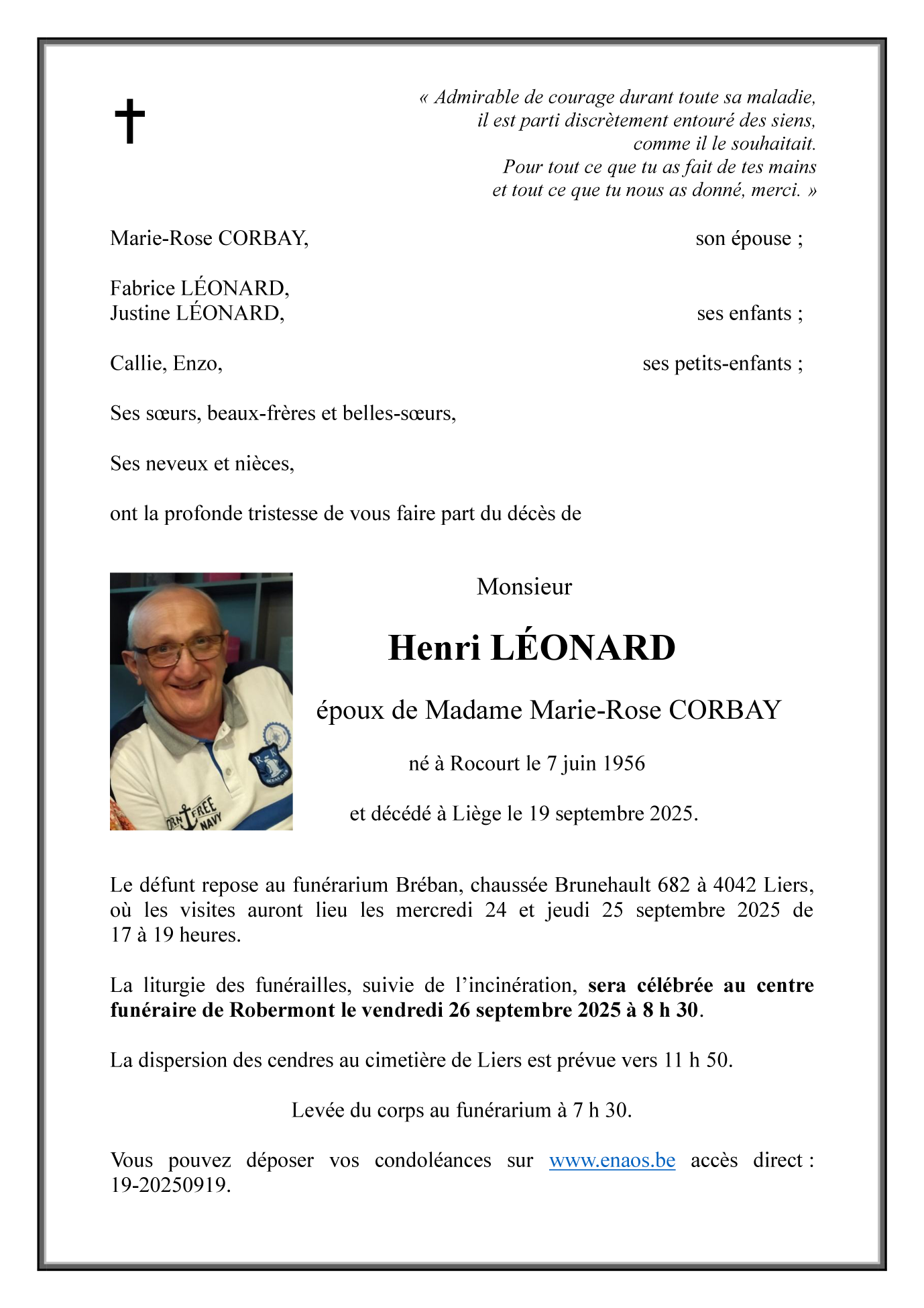 Décédé à Liège (4000) le vendredi 19 septembre 2025 à l'âge de 69 ans