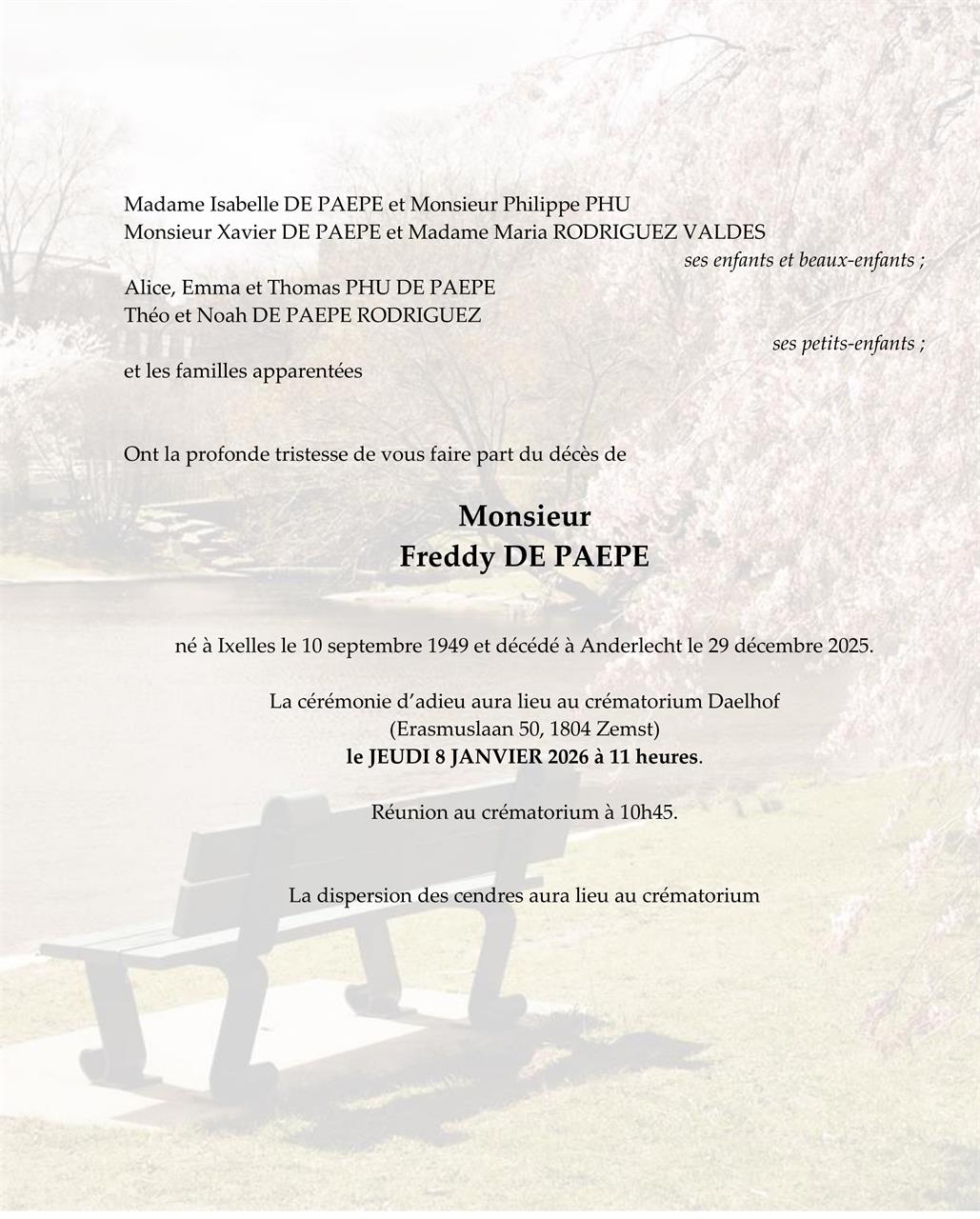 Décédé à Bruxelles (Anderlecht) (1070) le lundi 29 décembre 2025 à l'âge de 76 ans