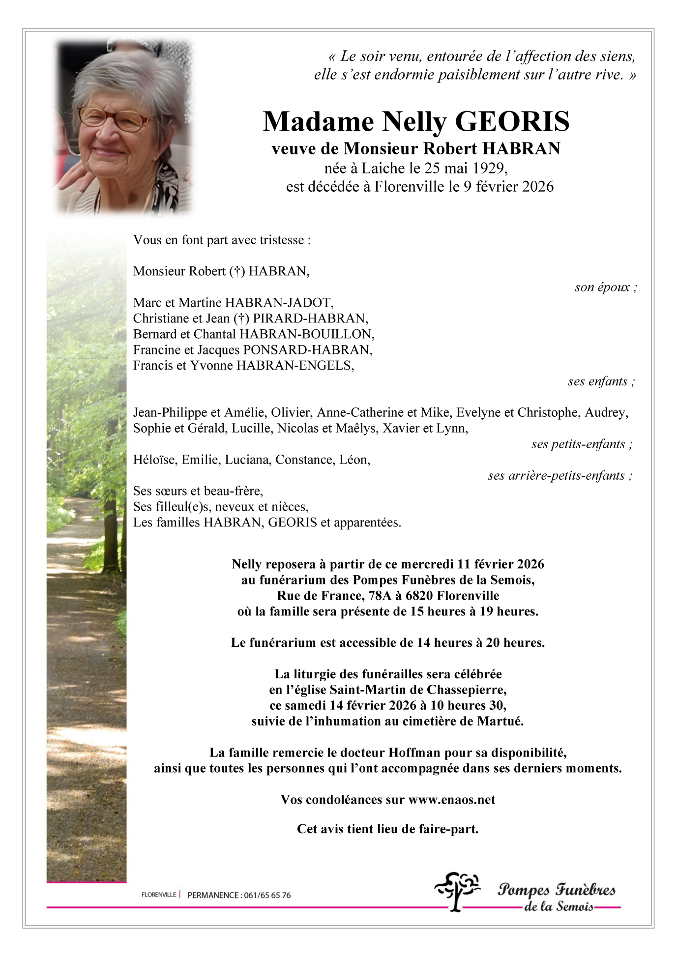 Overleden te Florenville (6820) op maandag 9 februari 2026 op 96-jarige leeftijd